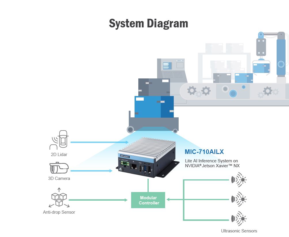 此外,MIC-710AILX雖然尺寸精巧,卻能提供性能強大的超高運算效能。透過搭載的NVIDIA Jetson Xavier NX平台,其能讓內裝多種感測裝置且需透過AI深度學習來規劃路徑與避障的AMR順暢運行,免除了一般工業電腦易出現當機或延遲反應的狀況。