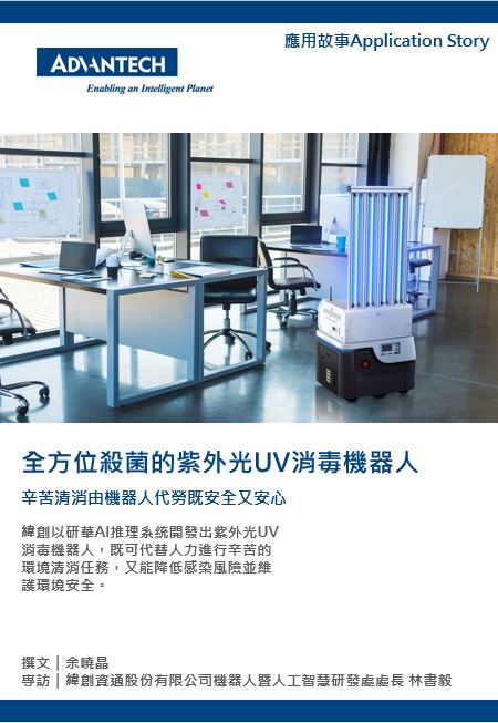 緯創以研華AI推理系統開發出紫外光UV消毒機器人,既可代替人力進行辛苦的環境清消任務,又能降低感染風險並維護環境安全。