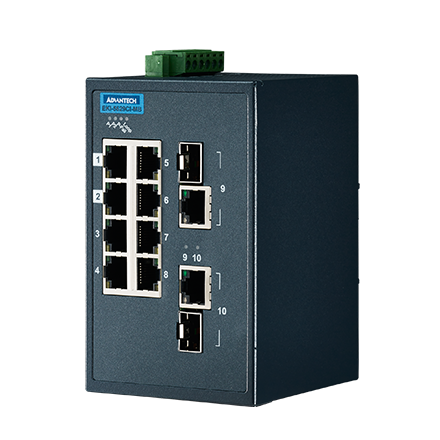- 8 個快速乙太網路埠 + 2 個 Gigabit 銅纜/SFP combo 埠 (EKI-5629C/CI-MB)