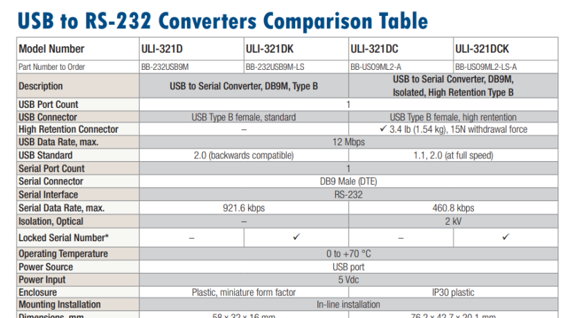 Serial communications are still used in many industrial devices as well as in legacy capital equipment in factories and enterprises. Older devices were designed to connect through serial ports, but of course won’t work with modern IoT systems. As the demand for using big data to optimize manufacturing processes and reduce energy consumption grows, decision makers are seeking solutions to allow data from the OT domain to be available to the IT domain. USB-to-serial converter allows serial equipped legacy devices such as PLCs, to communicate with a PC via a USB port for data visualization and management.