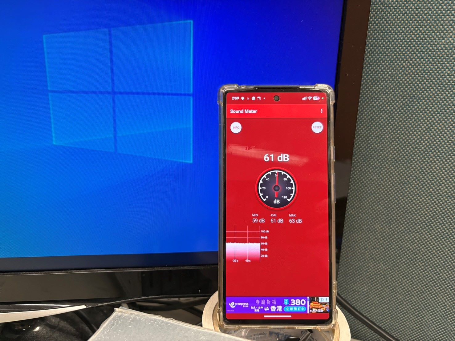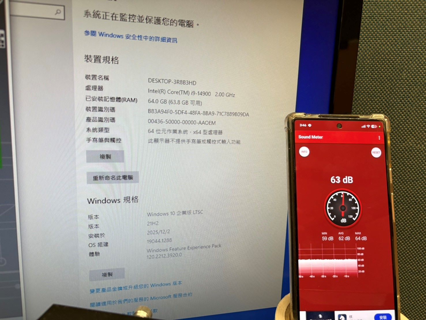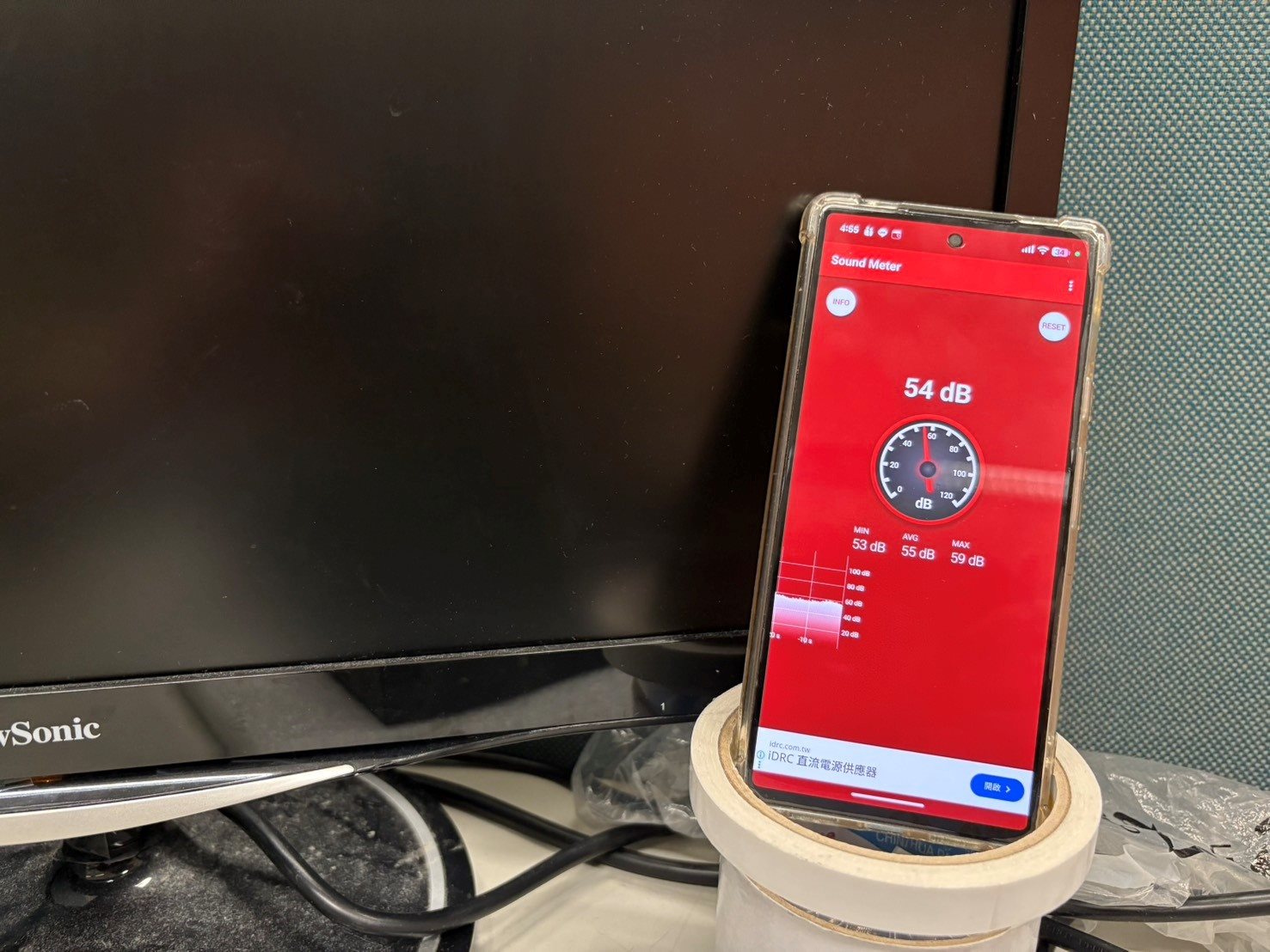 還沒開機時,安靜的辦公室大約在60dB以內