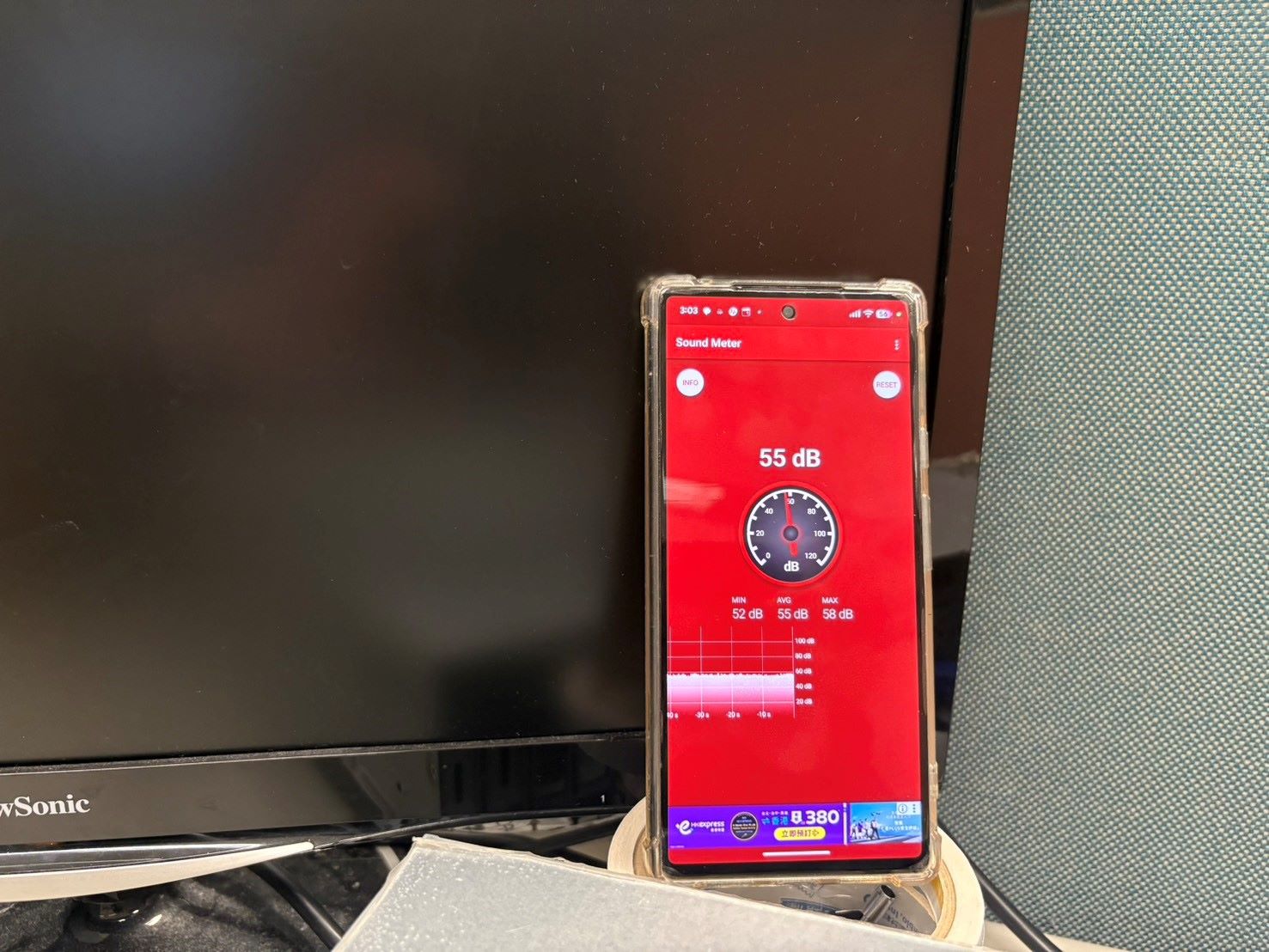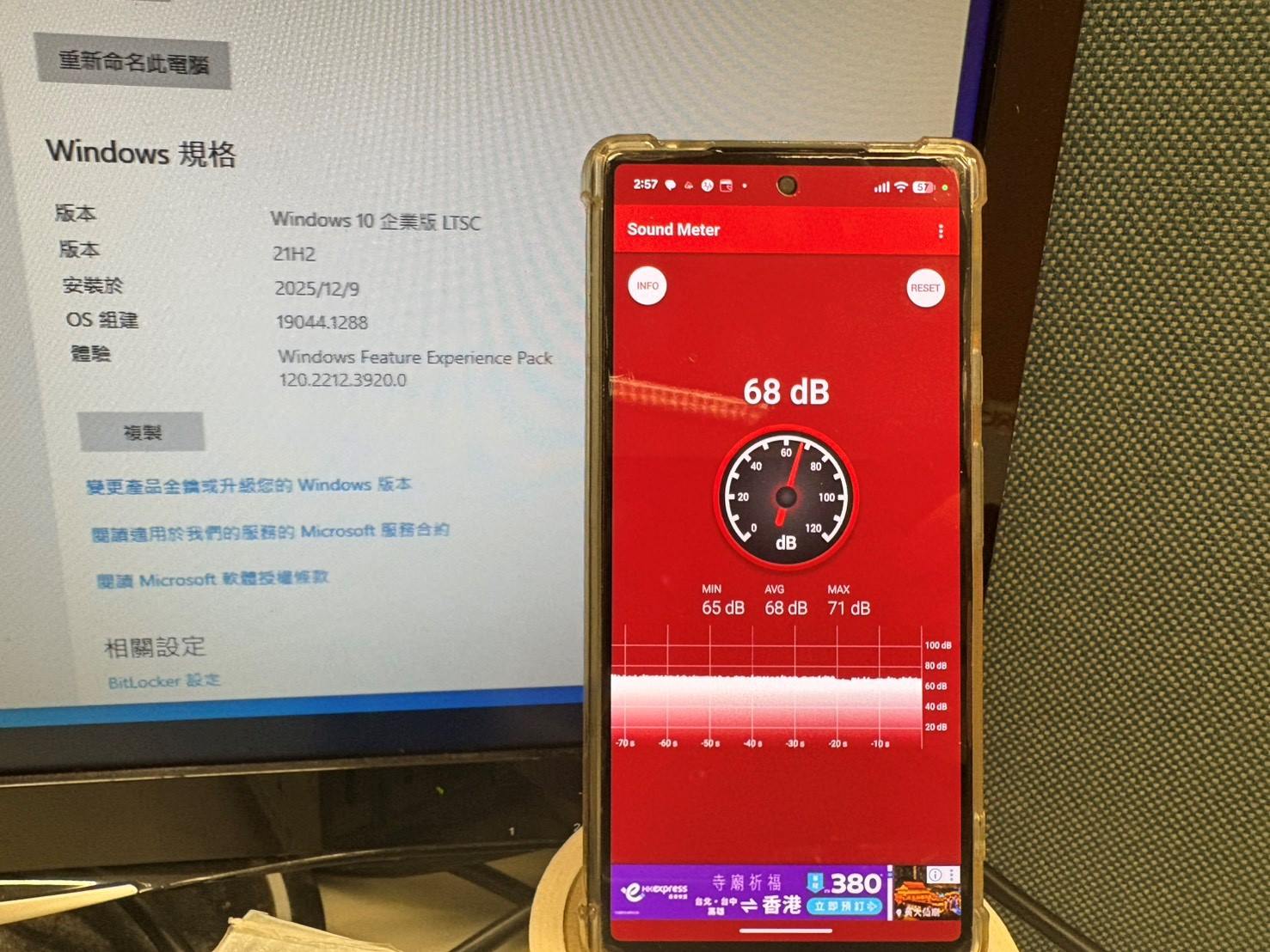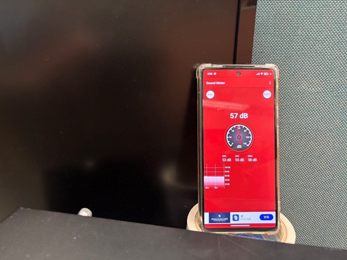 還沒開機時,安靜的辦公室大約在60dB以內