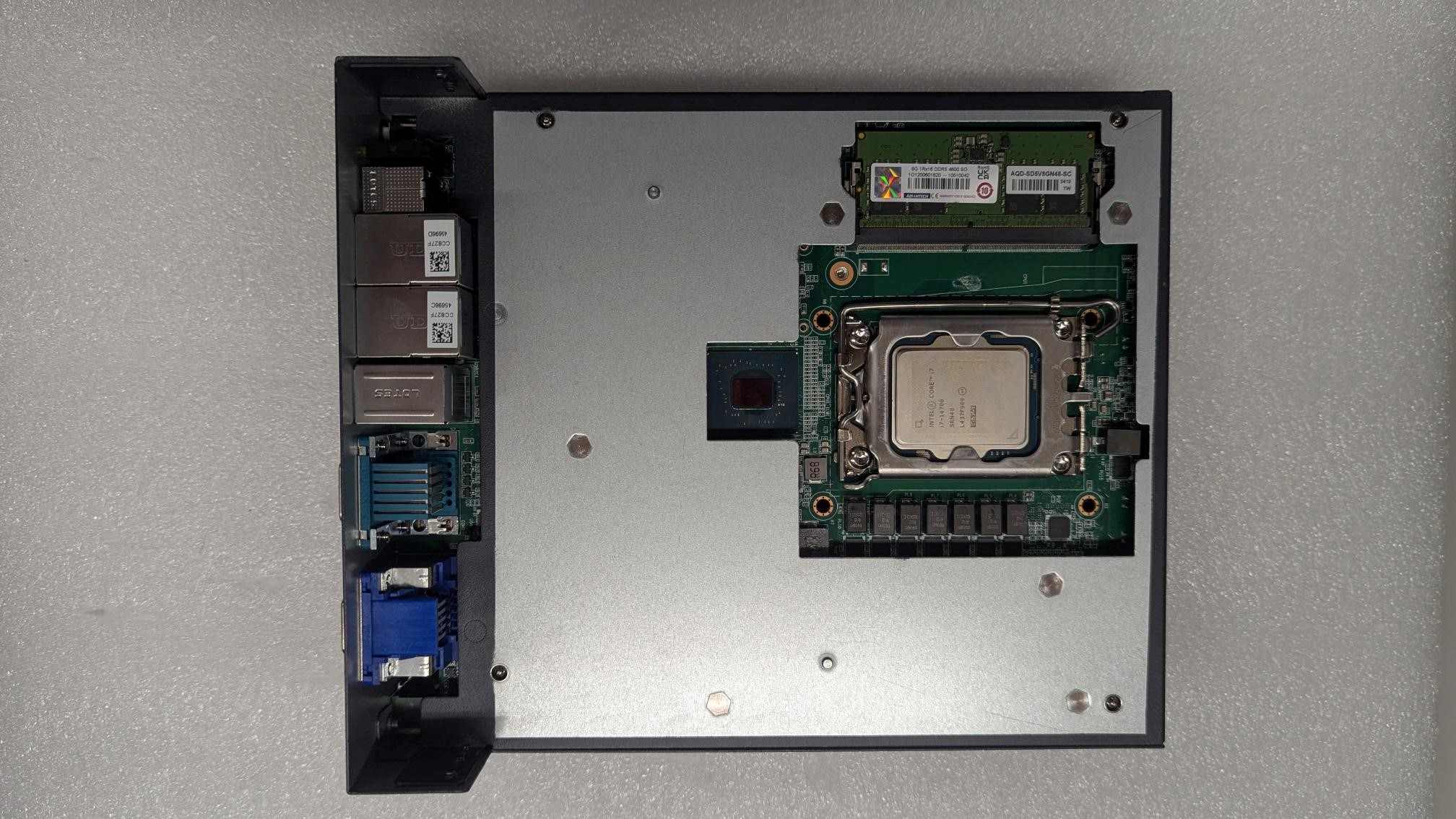 移除散熱鰭片後,可以看到 CPU 和 RAM 的設計是 貼合鰭片以輔助散熱