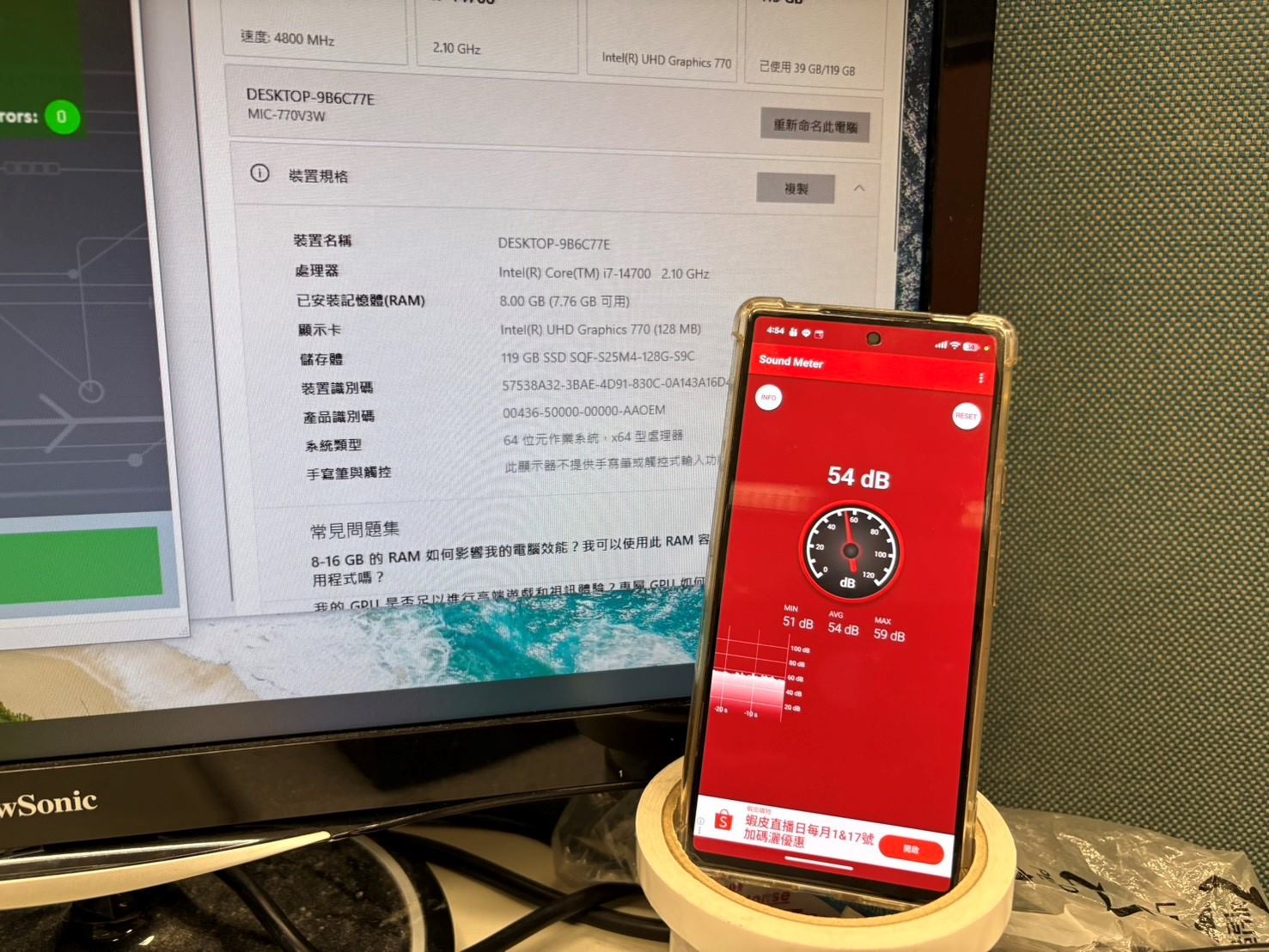 測試工具:Passmark Burn in Test + 手機分貝計來測試收錄到的噪音