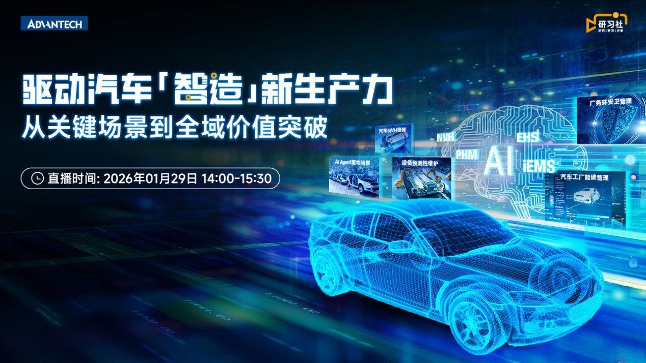 1月29日下午2:00,研华将直击汽车制造四大核心痛点,拆解标杆案例背后的实施逻辑:从全栈式布局到软硬一体化落地,从 AI Agent的敏捷应用到生态伙伴协同赋能的实战路径,分享研华如何通过“软硬结合,数据贯通”的方式,助力企业实现从单点智能到全局协同的跨越。