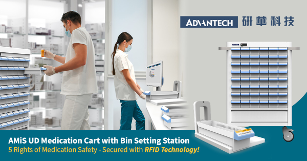 研華AMiS智慧用藥解決方案為軟硬整合的一站式解決方案,其後端管理平台可協助整合醫院既有的醫療資訊系統及護理資訊系統(NIS),同時搭載研華智慧藥車解決方案,包括以 RFID 技術作為核心的桌上型/落地式智慧藥櫃、智慧藥櫃推車、內嵌智慧藥櫃的行動護理推車等多元品項,醫療業者可以視需求彈性選擇。透過後端管理平台,藥師可以查看醫囑並據此配藥、發藥至智慧藥櫃,再由護士將藥品交到病患手中,過程中皆使用RFID完整紀錄每一個作業環節,使管理者可以準確追蹤藥品在各個環節的流向,以確保配藥給藥的即時性、正確性及安全性。