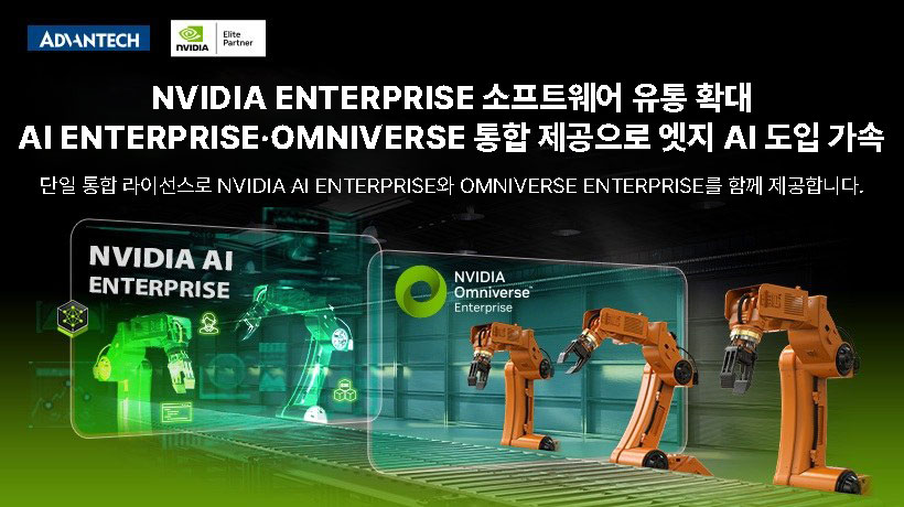 NVIDIA AI Enterprise와 NVIDIA Omniverse Enterprise에 모두 접근할 수 있는 NVIDIA Enterprise 소프트웨어 라이선스는 어드밴텍을 통해 제공되며, 스마트 제조, 로보틱스/자동화, 에너지 및 유틸리티, 헬스케어, 교통, 스마트 시티/리테일 등 주요 산업 분야에서의 AI 및 디지털 트윈 전략을 지원합니다. 어드밴텍의 소프트웨어 유통 및 인증된 엣지 AI 플랫폼에 대한 보다 자세한 정보는 공식 웹사이트를 방문해 확인하실 수 있습니다. 어드밴텍 웹사이트
