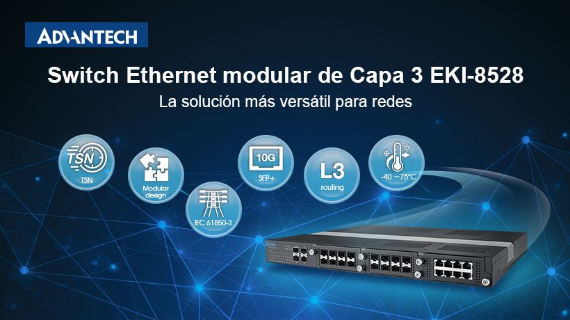 Advantech, un proveedor líder de soluciones IoT industriales, ha anunciado su nuevo switch Ethernet modular EKI-8528. Este switch está diseñado para mejorar la gestión y la conectividad de la red en subestaciones digitales y suministro eléctrico. Cumple las exigentes normas IEC 61850-3 y ofrece soluciones especialmente adaptadas a los requisitos complejos y exigentes de redes industriales de tamaño medio y grande. El EKI-8528 admite hasta 24 puertos Gigabit y 4 opciones para enlace ascendente 10-Gigabit con el fin de cubrir los requisitos de diversos tipos de redes.