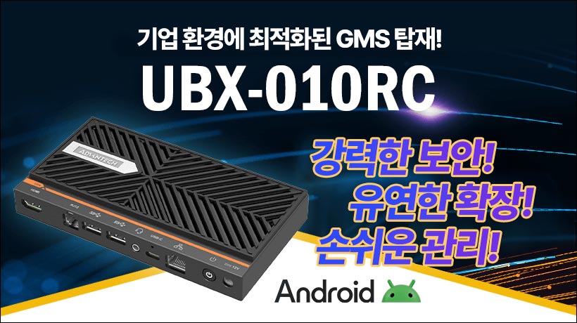 또한 Android™ 14에 최적화된 UBX-010RC는 정기 보안 업데이트와 엔터프라이즈급 디바이스 관리 기능을 지원하도록 설계되어, 대규모 디바이스 운영 시에도 장기적인 안정성, 데이터 보호, 중앙 집중식 관리가 가능합니다. 이는 연결된 안드로이드 디바이스를 대규모로 배포하는 기업을 위한 미래지향형 플랫폼입니다.