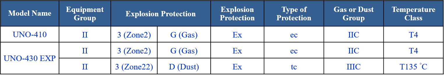 Được thiết kế để sử dụng trong các ứng dụng công nghiệp, gateway UNO chống cháy nổ có thiết kế chắc chắn và được chứng nhận hoạt động an toàn trong các môi trường nguy hiểm, bao gồm cả môi trường trong tủ và ngoài trời. Cụ thể, UNO-410 được chứng nhận để hoạt động ở các địa điểm được phân loại UL Class I, Division 2, ATEX / IECEx Zone 2, tức là có lớp vỏ chống cháy nổ. Trong khi đó, gateway UNO-430-E1H được chứng nhận cho môi trường được phân loại UL Class I, Division 2, ATEX / IECEx Zone 2, Zone 22, lý tưởng cho việc lắp đặt ngoài trời / ven đường.